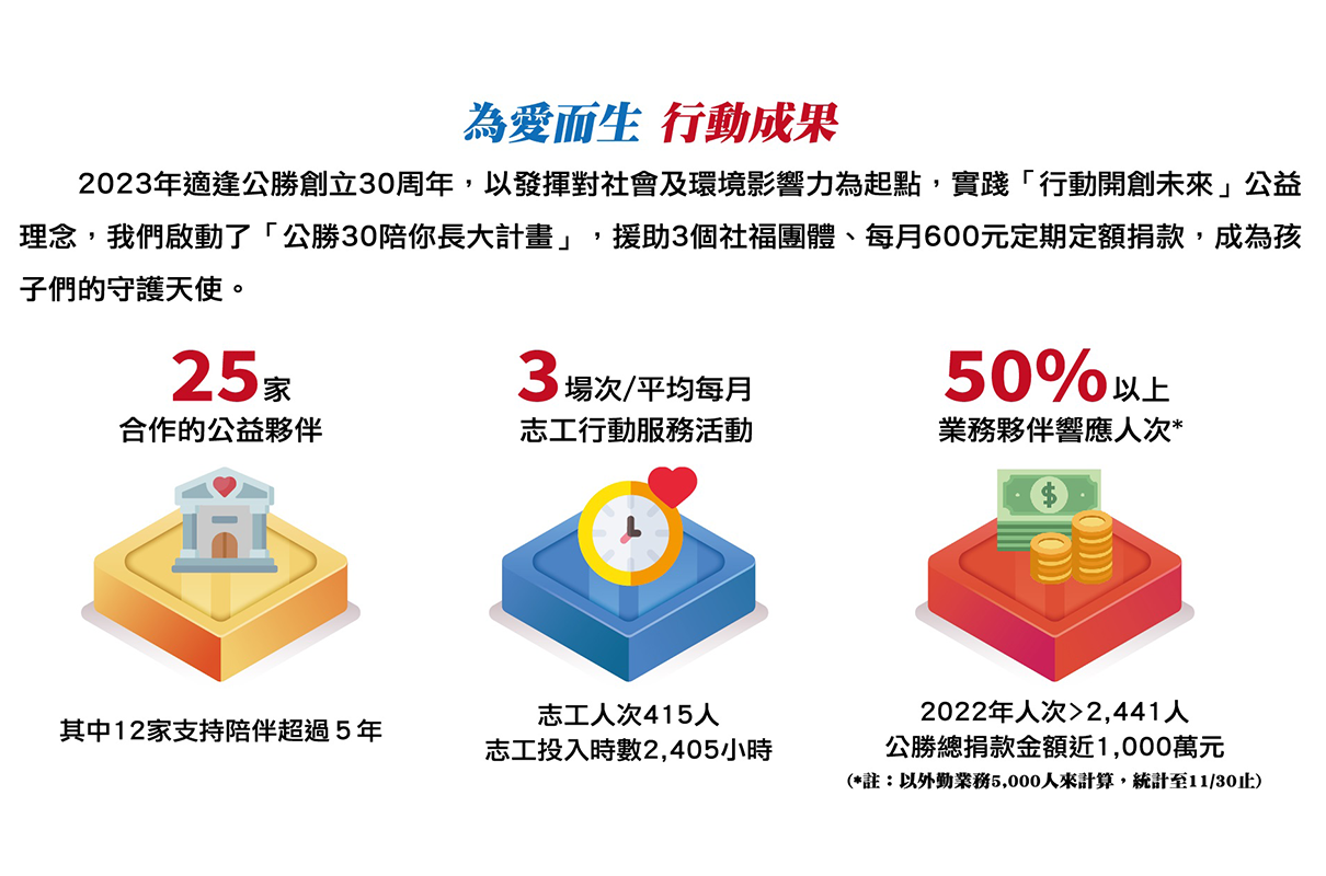 實現行動開創未來公益理念,啟動公勝30陪你長大計劃,援助3個社福團體