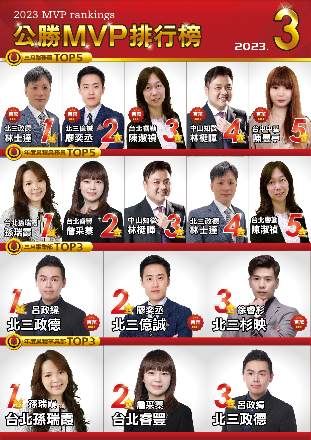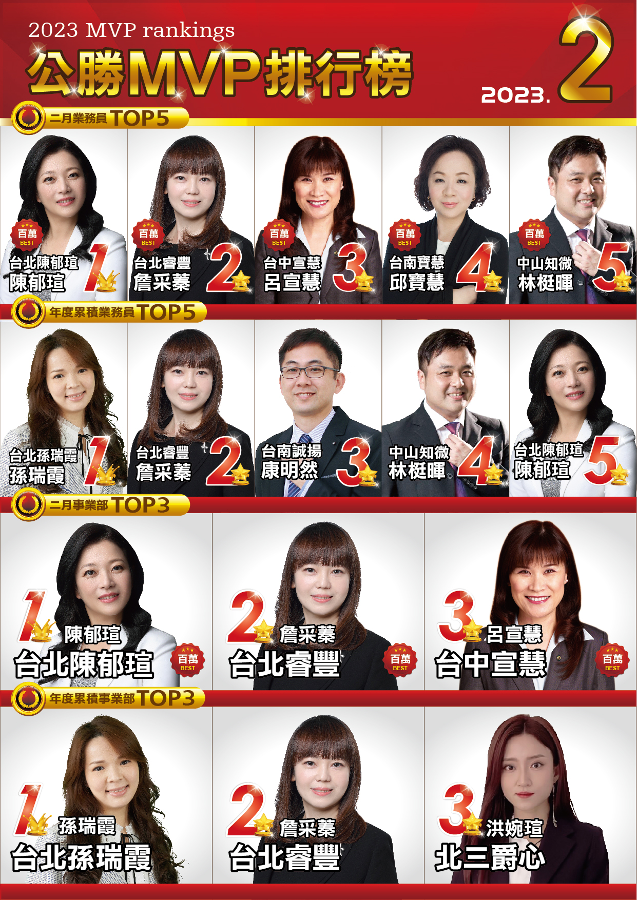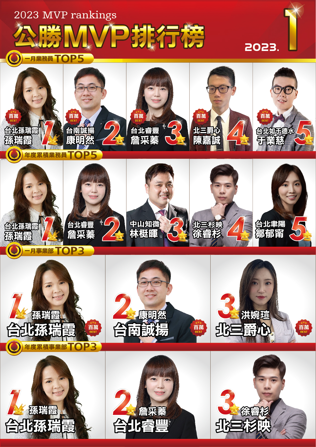 MVP排行榜|菁英團隊|公勝保險經紀人(股)公司