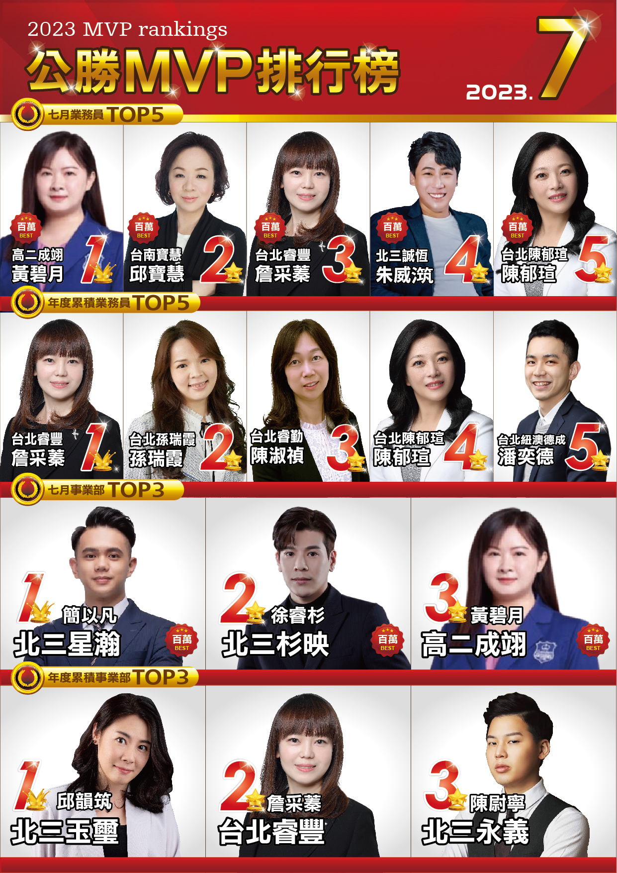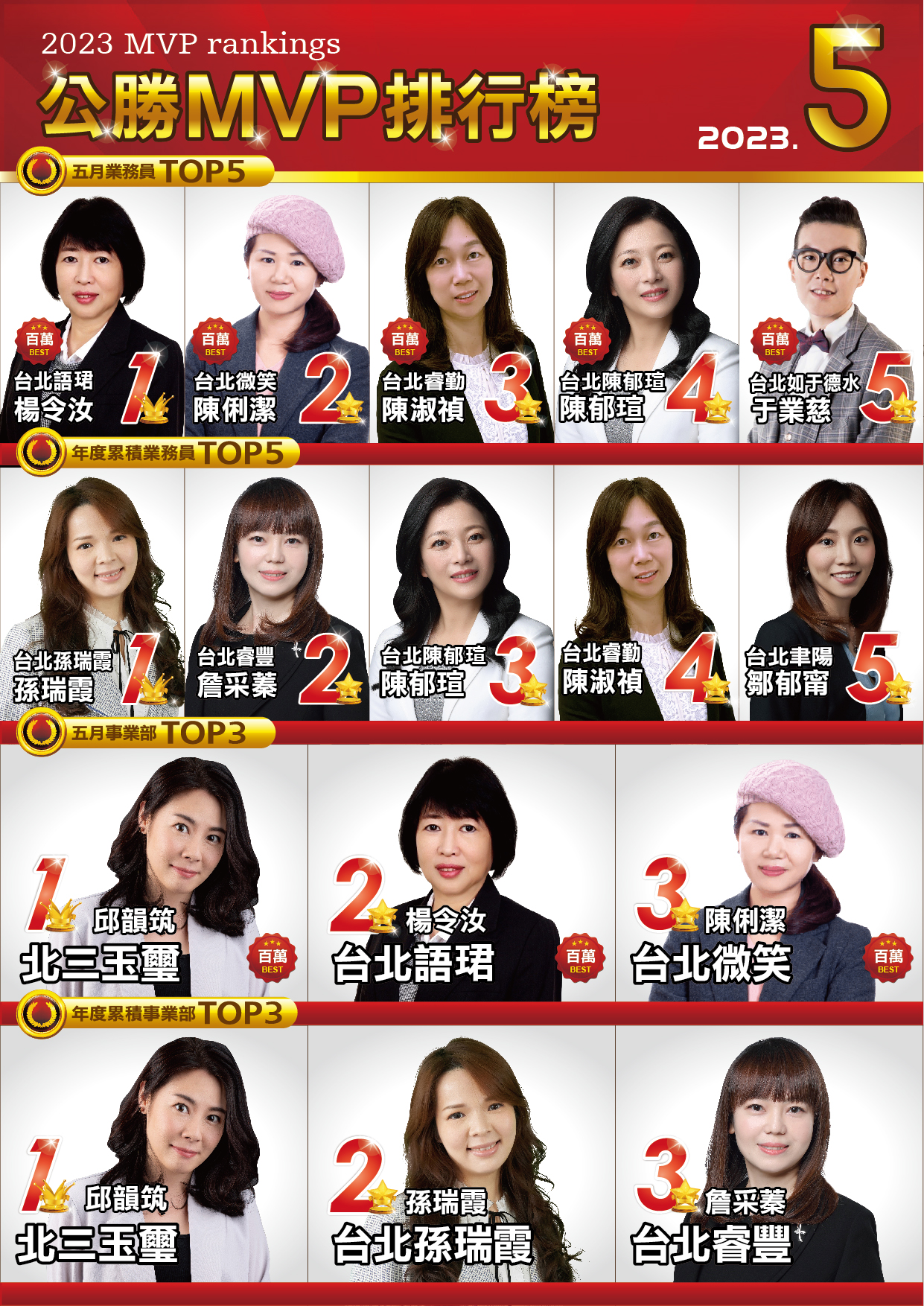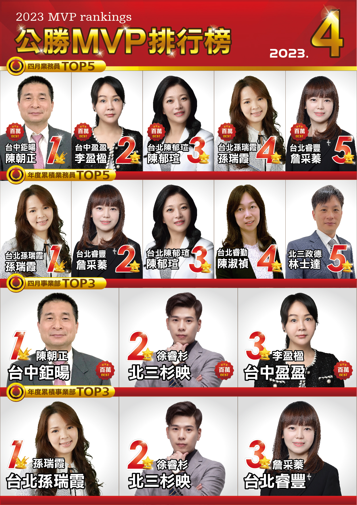 MVP排行榜|菁英團隊|公勝保險經紀人(股)公司